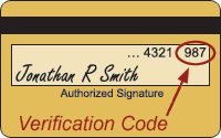 The verification code is not encoded into the magnetic strip on your card, so the it is not picked up by card readers. The verification code is not part of your credit card account number, so it does not show up on any sales receipt or billing statement. Therefore, you must have the card in your possession to see and use the code. Since we validate the code with your bank, only you can use your card at our site